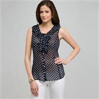 Polka Dot Ruffle Sleeveless Blouse x0085
